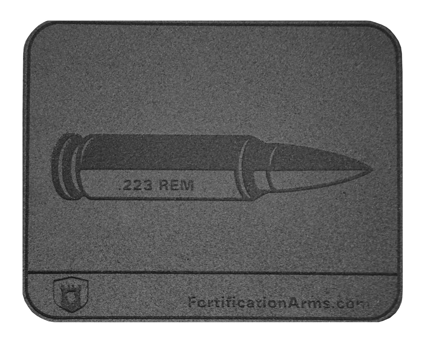 Pianka na kolbę (bakę) o wymiarach 10 cm na 8 cm z motywem graficznym „Nabój .223 REM” z oznaczeniem kalibru.
